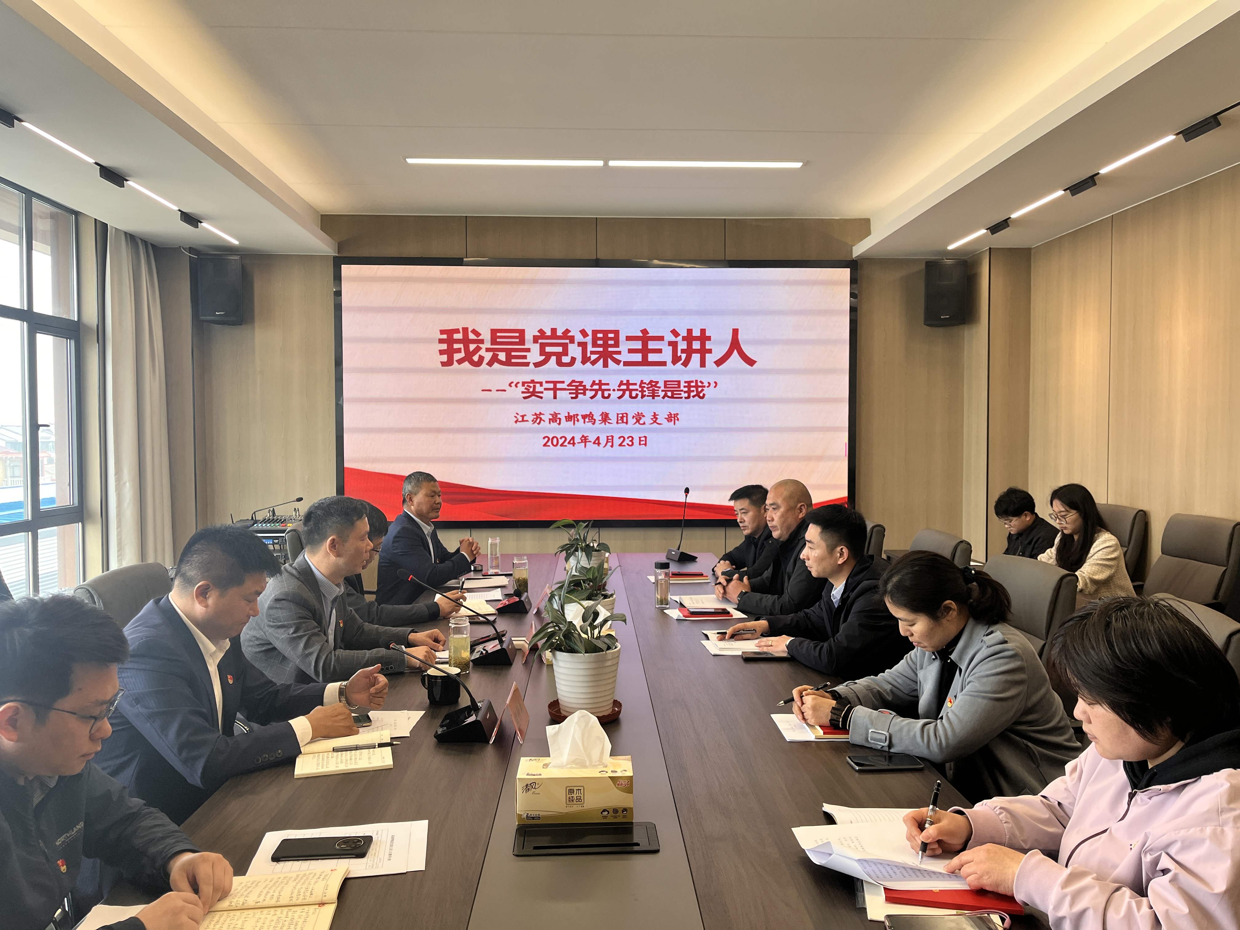 4月23日上午,高郵鴨集團黨支部開展4月份“統(tǒng)一活動日”暨黨課主講人活動,支部全體黨員青年職工代表參加會議,會議由梁勇書記主持。