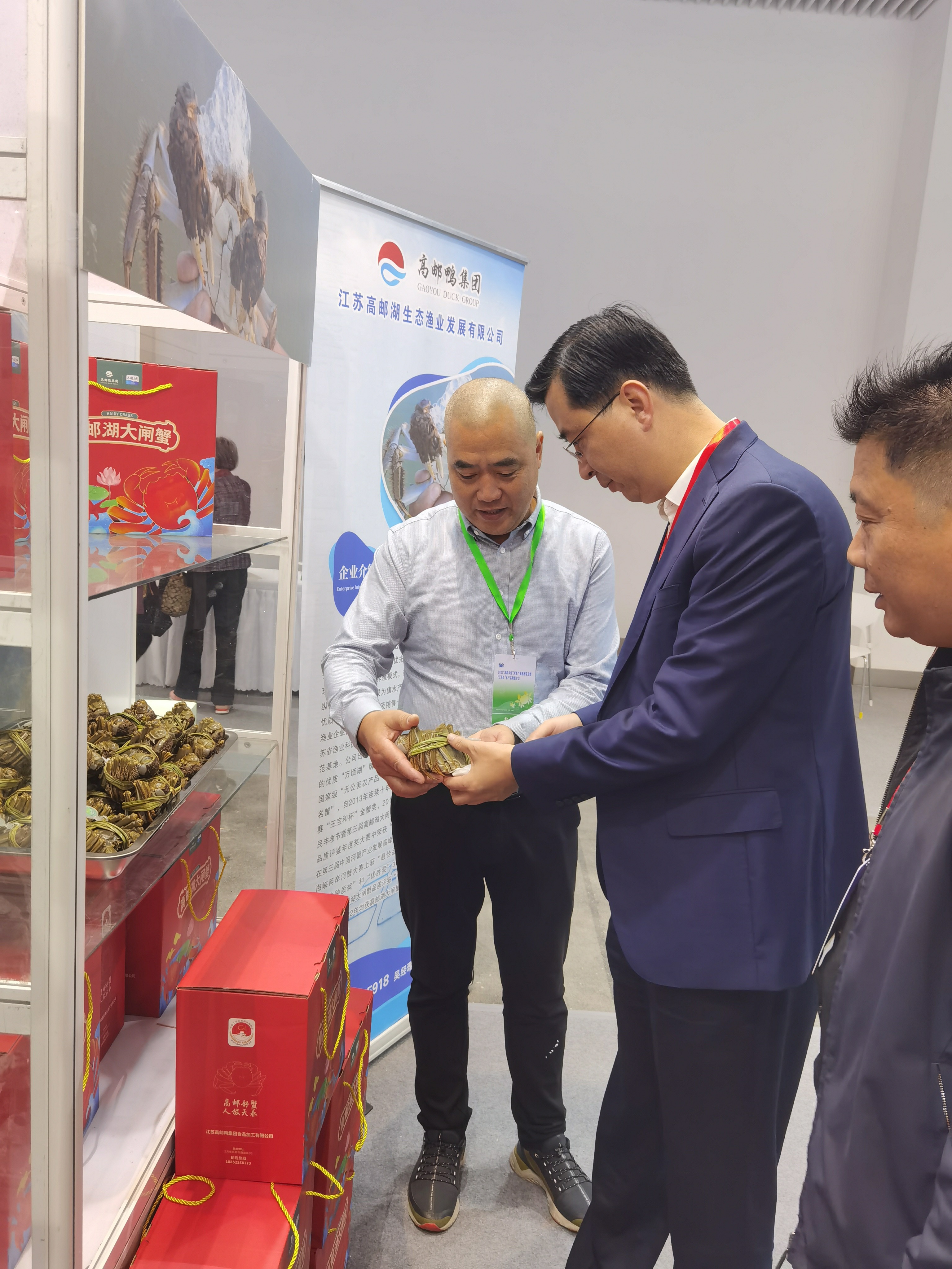 漁業(yè)公司出產(chǎn)的“萬頃湖”牌高郵湖大閘蟹在展覽會上精彩亮相,江蘇省農(nóng)業(yè)農(nóng)村廳一級巡視員唐明珍、原江蘇海洋與漁業(yè)局局長湯建鳴、高郵市副市長趙國祥、高郵市農(nóng)業(yè)農(nóng)村局局長凌高玉等領(lǐng)導蒞臨漁業(yè)公司展位視察指導,漁業(yè)公司負責人李旭華向來會嘉賓詳細介紹了漁業(yè)公司水產(chǎn)養(yǎng)殖、生態(tài)環(huán)境、經(jīng)營效益等方面的發(fā)展情況。此次推介會,不僅展示了湖區(qū)水產(chǎn)品的優(yōu)良品質(zhì),還有效提升了公司品牌形象。