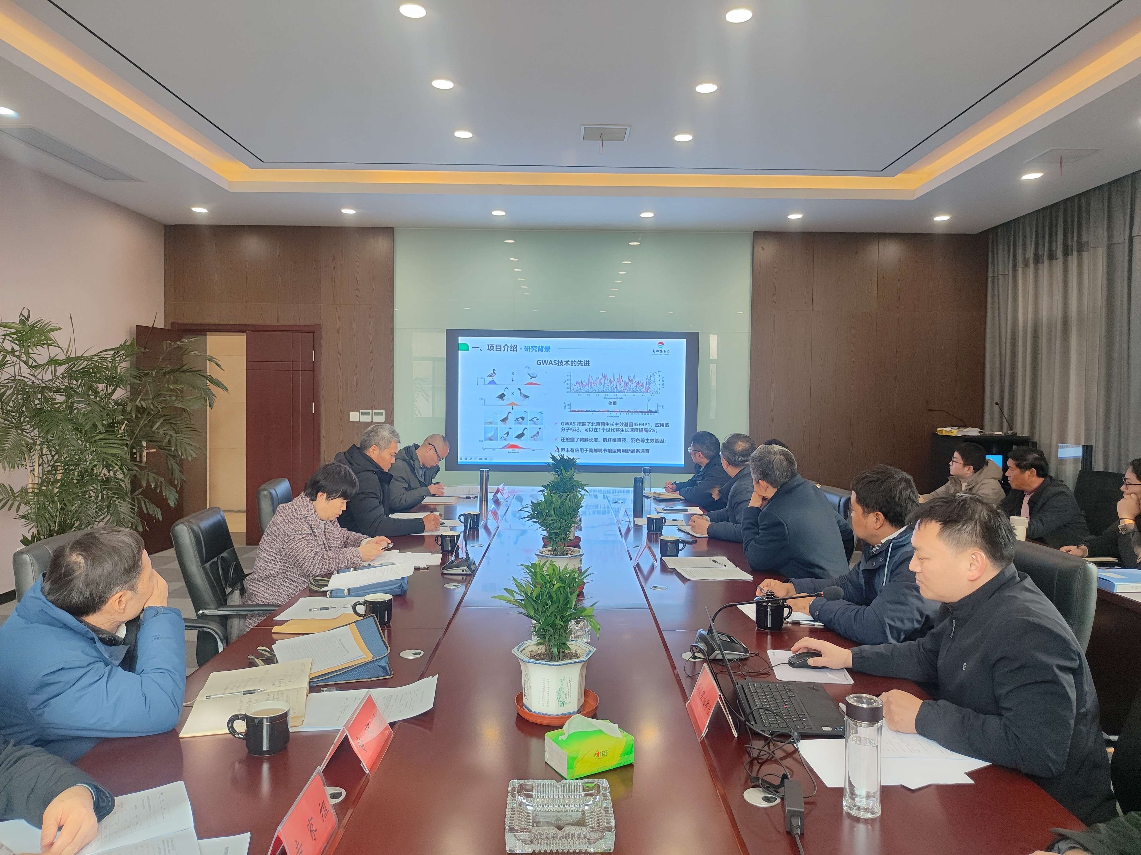 12月11日,江蘇省科技廳組織專家組對(duì)高郵鴨集團(tuán)承擔(dān)實(shí)施的江蘇省重點(diǎn)研發(fā)計(jì)劃(現(xiàn)代農(nóng)業(yè))-高郵鴨優(yōu)異基因挖掘及節(jié)糧肉用新品系選育項(xiàng)目進(jìn)行中期檢查,揚(yáng)州市科技局副局長(zhǎng)趙松林,高郵市科技局局長(zhǎng)曹勇參加檢查活動(dòng),江蘇省農(nóng)科院應(yīng)詩(shī)家研究員及高郵鴨集團(tuán)項(xiàng)目負(fù)責(zé)人做項(xiàng)目實(shí)施情況匯報(bào),并進(jìn)行現(xiàn)場(chǎng)答疑。