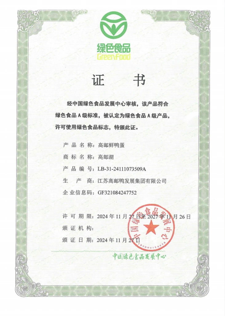 近日,中國綠色食品發(fā)展中心、江蘇省質(zhì)量發(fā)展委員會辦公室分別公布了“綠色食品”及“江蘇精品”認(rèn)證名單,高郵鴨集團(tuán)“高郵湖”牌系列產(chǎn)品分獲兩項(xiàng)殊榮。“綠色食品”是對產(chǎn)品的產(chǎn)地環(huán)境、生產(chǎn)過程、產(chǎn)品質(zhì)量等方面進(jìn)行嚴(yán)格要求認(rèn)證,是消費(fèi)者公認(rèn)的優(yōu)質(zhì)、安全、環(huán)保的食品標(biāo)志。“江蘇精品”則是江蘇省為推動(dòng)品牌建設(shè)、提升產(chǎn)品和服務(wù)質(zhì)量而設(shè)立的高標(biāo)準(zhǔn)認(rèn)證體系,旨在表彰江蘇省內(nèi)具有卓越品質(zhì)、創(chuàng)新能力和市場競爭力的企業(yè)和產(chǎn)品。