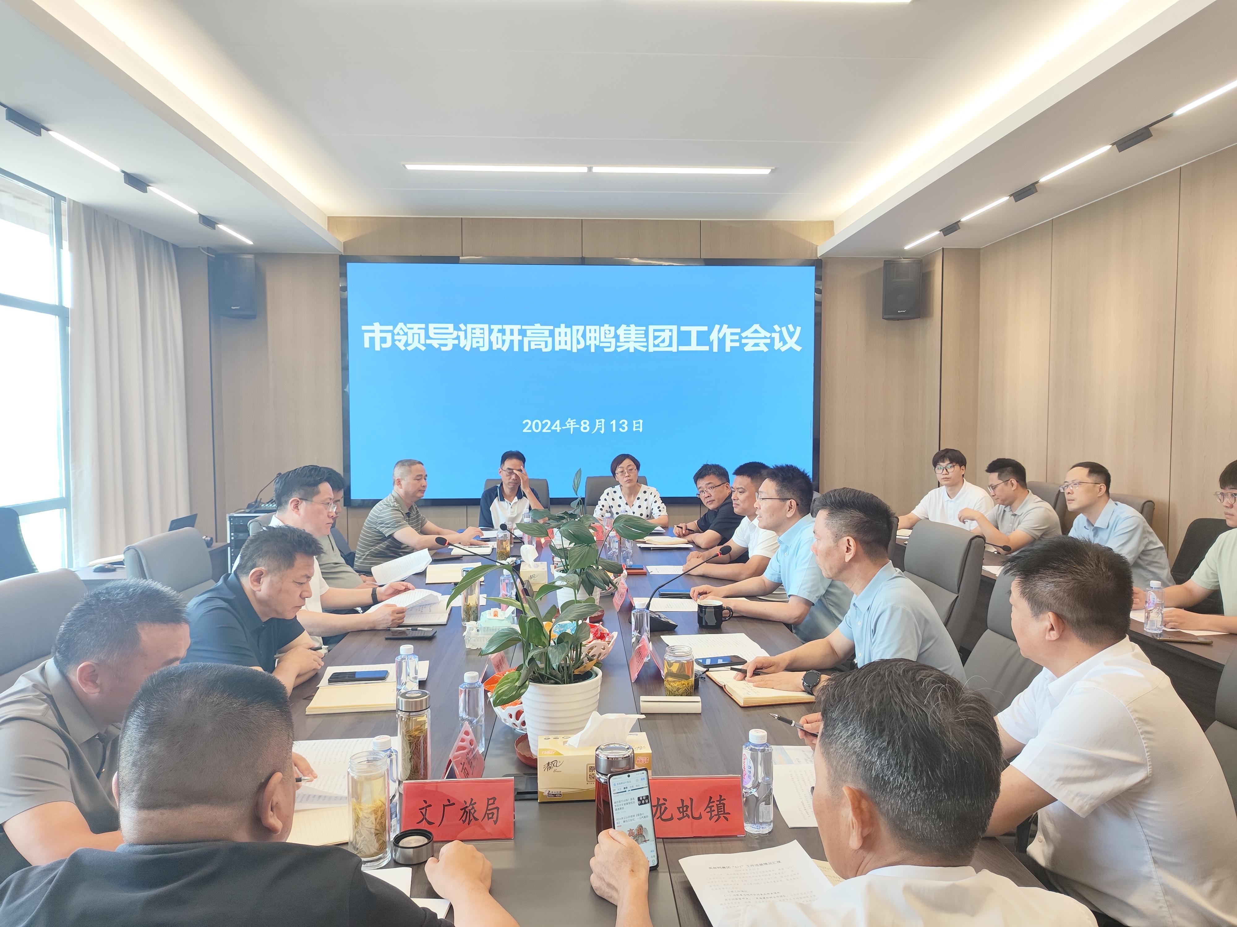 8月13日上午,市委副書記鄭志明帶隊調(diào)研高郵鴨集團工作,市農(nóng)業(yè)農(nóng)村局、財政局、科技局、市監(jiān)局、商務(wù)局、文廣旅局、農(nóng)文旅集團、龍虬鎮(zhèn)相關(guān)負(fù)責(zé)人參加調(diào)研,城投集團董事長邵德軍,城投集團副總經(jīng)理、鴨集團董事長黨定龍及鴨集團總經(jīng)理梁勇陪同調(diào)研。