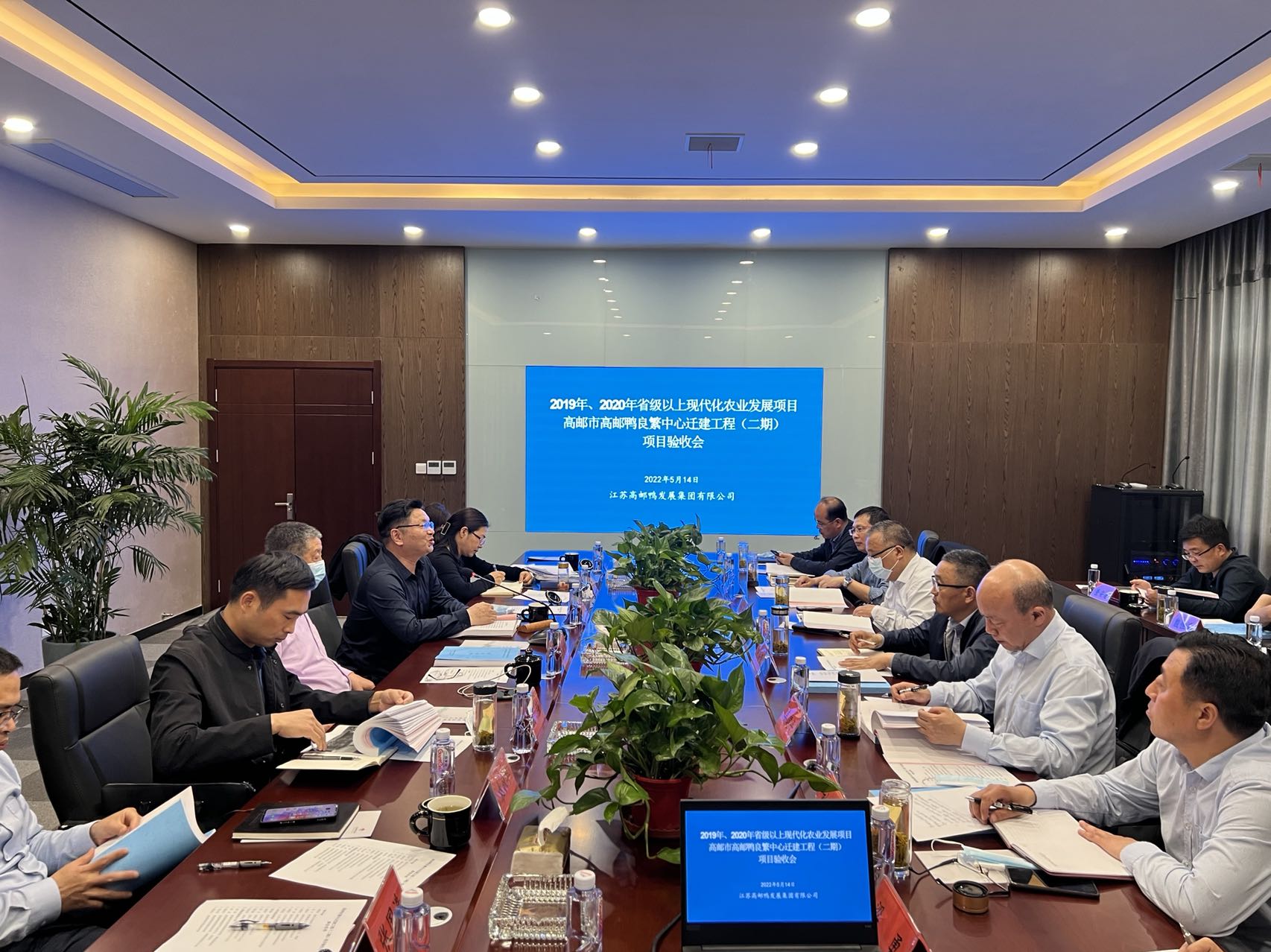 高郵市水投集團副總經理、鴨集團董事長劉廣游,鴨集團總經理梁勇,副總經理薛敏開、查安春、殷恒兵共同參加驗收會議。