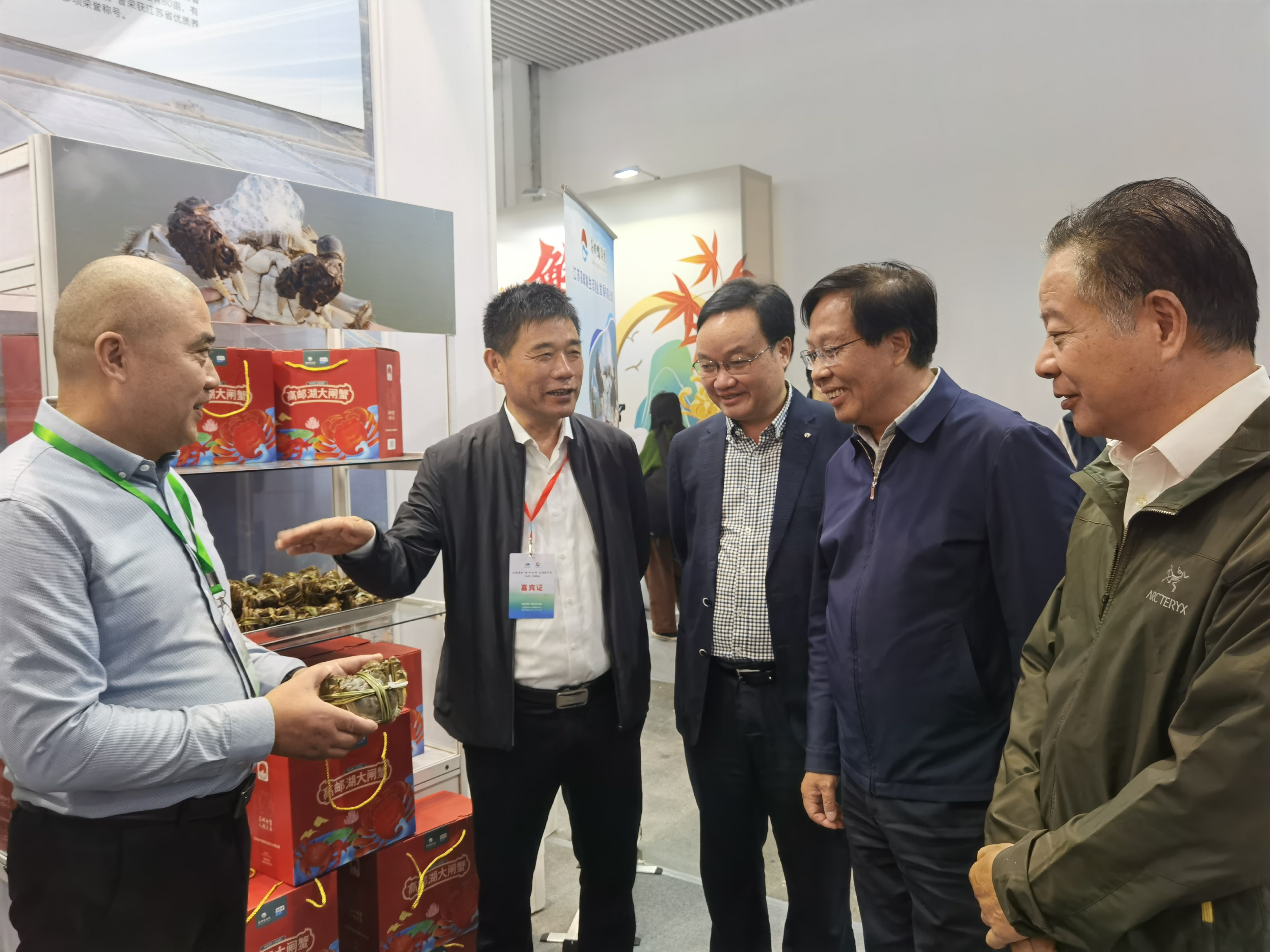 漁業(yè)公司出產(chǎn)的“萬頃湖”牌高郵湖大閘蟹在展覽會上精彩亮相,江蘇省農(nóng)業(yè)農(nóng)村廳一級巡視員唐明珍、原江蘇海洋與漁業(yè)局局長湯建鳴、高郵市副市長趙國祥、高郵市農(nóng)業(yè)農(nóng)村局局長凌高玉等領(lǐng)導蒞臨漁業(yè)公司展位視察指導,漁業(yè)公司負責人李旭華向來會嘉賓詳細介紹了漁業(yè)公司水產(chǎn)養(yǎng)殖、生態(tài)環(huán)境、經(jīng)營效益等方面的發(fā)展情況。此次推介會,不僅展示了湖區(qū)水產(chǎn)品的優(yōu)良品質(zhì),還有效提升了公司品牌形象。