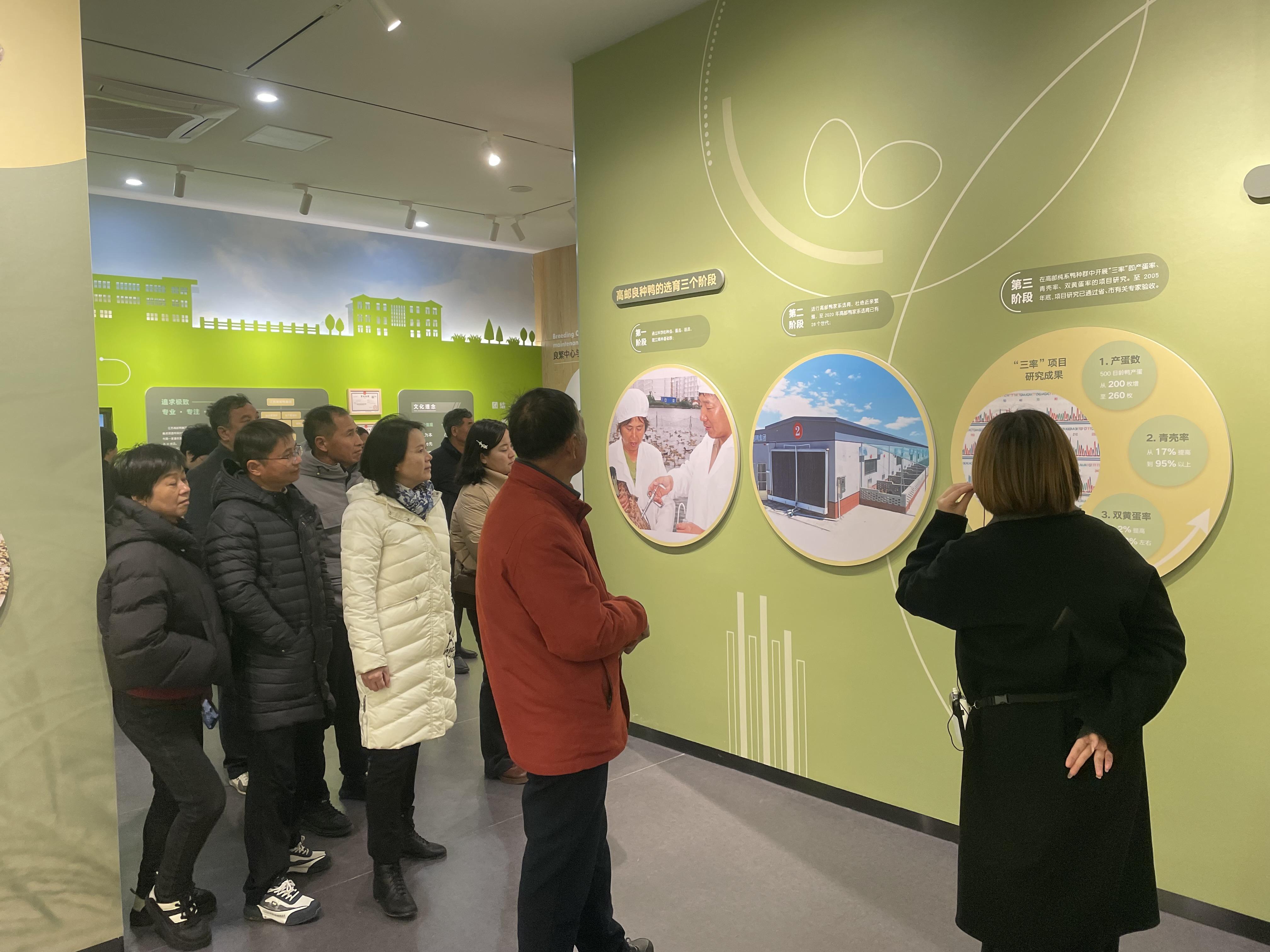 培訓(xùn)人員首先參觀了高郵鴨二期半集約化散養(yǎng)舍,了解高郵鴨養(yǎng)殖現(xiàn)狀及產(chǎn)能特性。在養(yǎng)殖基地展廳認(rèn)真聽取了關(guān)于高郵鴨集團(tuán)發(fā)展史講解,學(xué)員們還與基地相關(guān)技術(shù)人員進(jìn)行溝通交流,詳細(xì)詢問養(yǎng)殖過程中的技術(shù)要點(diǎn)和管理經(jīng)驗(yàn),并探討如何將高郵鴨的養(yǎng)殖經(jīng)驗(yàn)實(shí)際應(yīng)用到各自農(nóng)村集體經(jīng)濟(jì)組織的發(fā)展中。