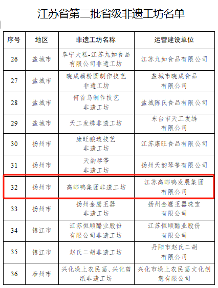 近日,江蘇省文化和旅游廳正式公布第二批省級非遺工坊名單,高郵鴨集團(tuán)憑借“高郵咸鴨蛋制作技藝”成功入選。