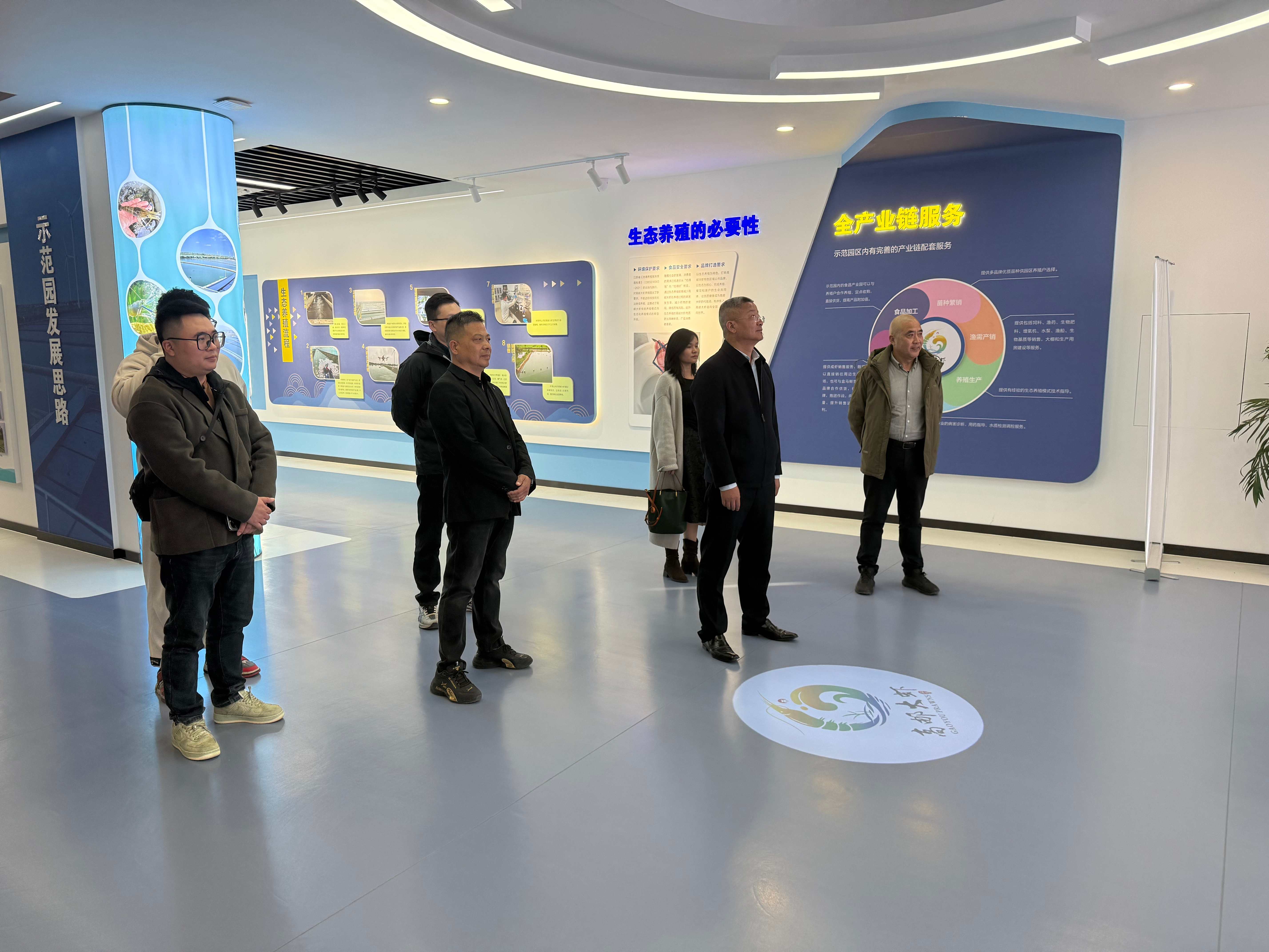 調(diào)研中,黃新忠一行首先參觀高郵大蝦產(chǎn)業(yè)科技服務(wù)中心一樓展廳,通過展廳圖文、實(shí)物及多媒體展示,全面了解高郵大蝦產(chǎn)業(yè)發(fā)展脈絡(luò)。并圍繞品種培育、產(chǎn)業(yè)規(guī)模、生態(tài)養(yǎng)殖技術(shù)與流程及產(chǎn)業(yè)鏈運(yùn)營模式等內(nèi)容詳細(xì)問詢交流,對該產(chǎn)業(yè)的發(fā)展基礎(chǔ)與標(biāo)準(zhǔn)化運(yùn)營體系有了直觀深刻的認(rèn)識。