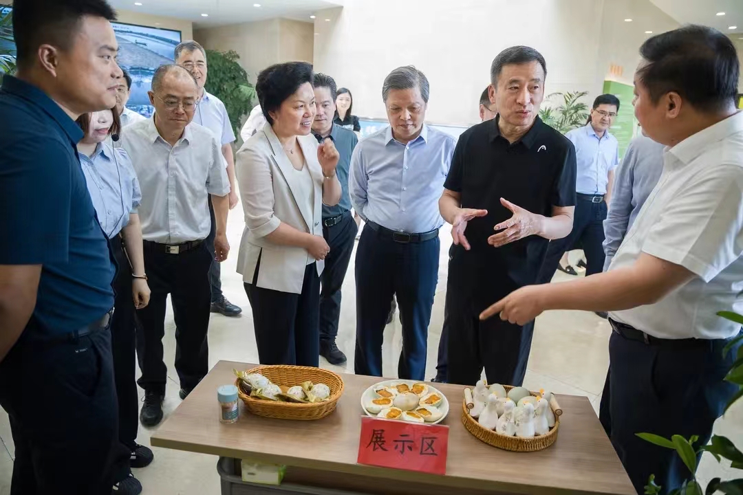 6月19日上午,省人大常委會常務(wù)副主任、黨組副書記樊金龍來高郵鴨集團(tuán)育繁推基地調(diào)研,省人大常委會秘書長陳建剛、揚(yáng)州市人大常委會主任孔令俊、揚(yáng)州市人大常委會副主任沙志芳和高郵市委書記張利、高郵市人大常委會主任張秋紅陪同調(diào)研。
